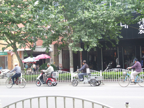 我愛周口人民:逛街時路過人民商場,發現快車道里自行車、電動車、機動車混行,甚至有的還帶兩個人,真是不安全啊!