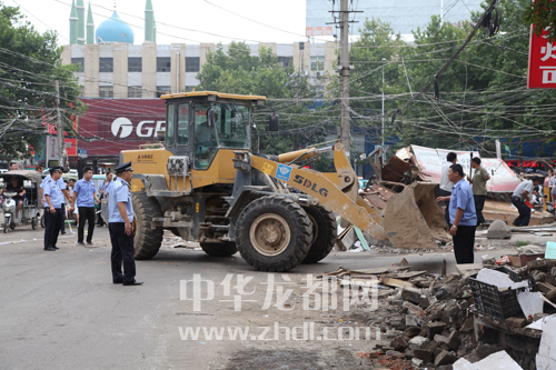 ????通過多日來不懈努力,西大街(中州路至荷花路段)和老街上的占道簡易棚,除一處尚在自拆外,其余悉數拆除;陳州街的各類私搭亂建構筑物也全部拆除,小吃攤點整齊有序地擺放在交通隔離護欄以內。