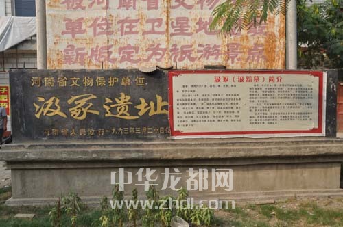 ????位于鄲城縣汲冢鎮張莊村北,南臨淮(陽)鄲(城)公路。據傳西漢時期曾任淮陽太守的汲黯死后葬此,故名汲冢。遺址現存面積約200平方米,內含仰韶、大汶口、龍山和商周文化遺存。遺物中仰韶、大汶口文化陶片較少,僅見夾砂紅陶片、鴨嘴形鼎足和陶觚等。龍山文化陶片較多,以泥質和夾砂灰陶為主,也有少量褐、黑陶,飾籃紋、方格紋和繩紋。器形有平底盆、罐、罐形鼎、甗、碗、杯等。商周文化的陶器有大口尊、盆、鬲和罐等。此外還發現有漢代遺物。????