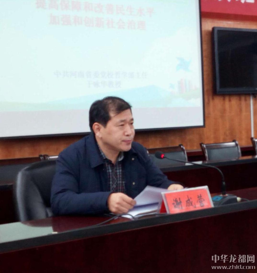 中華龍都網訊(周口報業全媒體記者馬治衛)1月12日晚上,為深入學習貫徹黨的十九大精神,把太康縣干部群眾的思想和行動統一到黨的十九大精神上來,太康縣第四期夜讀班講座開講。太康縣在家的四大班子領導、各鄉鎮黨政正職、縣直各單位主要負責人及太康縣宣講團全體成員在該縣綜合樓一樓會議室聆聽了講座。此次講座由河南省委黨校于詠華教授授課,太康縣縣委常委、宣傳部長謝成營主持并講話。