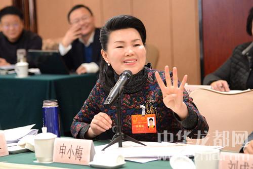 申小梅代表就如何發揚光大傳統文化藝術提出建議。記者王映攝