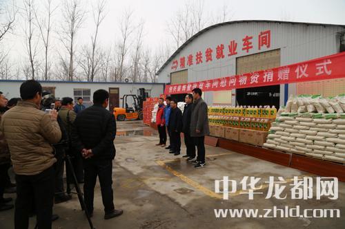 中華龍都網(wǎng)訊 (周口報(bào)業(yè)全媒體記者張勁松 通訊員 蘇千) 新年送溫暖,扶貧獻(xiàn)愛(ài)心。1月28日下午,東新區(qū)許灣鄉(xiāng)創(chuàng)興裝飾公司暨扶貧車(chē)間慰問(wèn)貧困戶(hù)捐贈(zèng)儀式在許灣鄉(xiāng)精準(zhǔn)扶貧就業(yè)車(chē)間隆重舉行。當(dāng)日,該公司為許灣鄉(xiāng)貧困戶(hù)捐贈(zèng)了價(jià)值6萬(wàn)余元的米、面、油等扶貧物資。許灣鄉(xiāng)黨委書(shū)記李培華,東新區(qū)紀(jì)檢監(jiān)察室副主任、許灣鄉(xiāng)于莊行政村第一書(shū)記高賓及企業(yè)相關(guān)負(fù)責(zé)人出席儀式。
