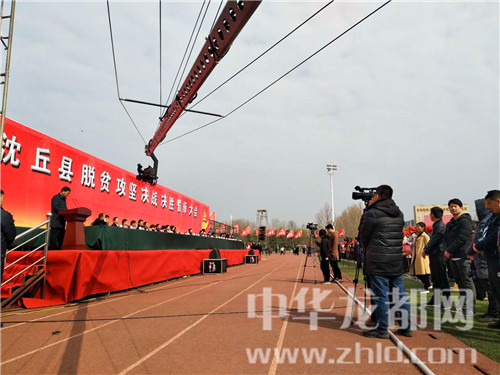 中華龍都網訊(周口報業全媒體記者韋偉 通訊員王佳佳)2018年3月16日10點,沈丘縣新區廣場,一場近萬人參與的脫貧攻堅決戰決勝誓師大會正在有序推進。