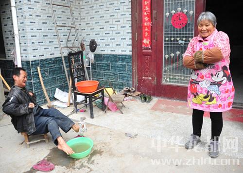 中華龍都網訊(周口報業全媒體記者 李瑞才 通訊員 胡洪濤文/圖)張紅印是鹿邑縣鳴鹿辦事處麻窩張村一名低保重度殘疾人,今年44歲,他一歲時患小兒麻痹癥導致四肢和大腦殘疾,雙臂萎縮、雙腿僵硬,走起路來搖搖晃晃,只有兩只腳能用上,勉強趔趔趄趄走路。“這孩子起小得病,他是老大,我七個孩子,沒錢看病,小時候也沒少費勁,到十歲才發現他想干些活,發現他會燒鍋。然后我就想他手不能用還有腳,我要教會他,我死后起碼他能自己生活。”媽媽李新蘭抹著淚說。
