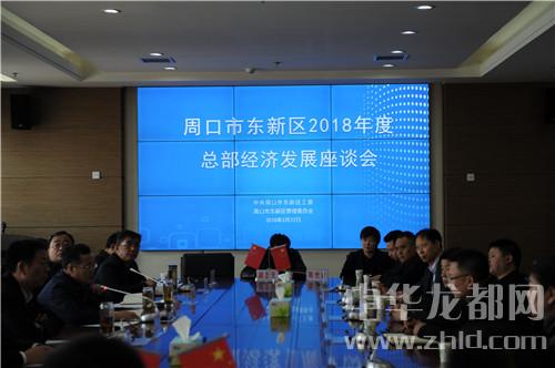中華龍都網訊(周口報業全媒體記者張勁松通訊員張夢雅文/圖)3月22日上午,周口市東新區召開2018年度總部經濟發展座談會。東新區黨工委書記閆立超,管委會主任張建黨,商務中心區副主任潘國華,副調研員、財政局長王宇飛出席會議。區直相關部門負責人和東新區部分企業代表參加會議。會議的主要目的是強化組織領導,政府和企業加強溝通,為總部經濟發展提供有力保障,以扎實的作風推進總部經濟的發展。