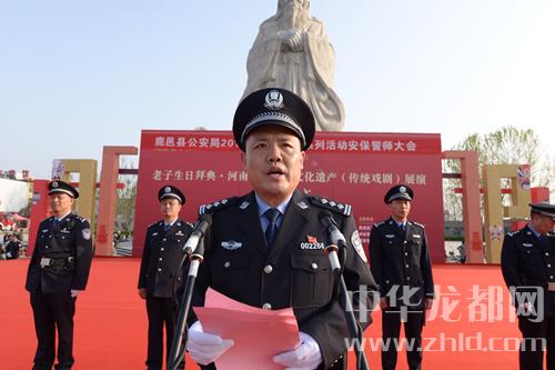 中華龍都網訊(周口報業全媒體記者 李瑞才 通訊員 石中華 文/圖)為扎實做好2018年老子廟會系列活動安全保衛工作,進一步鼓舞士氣、激勵斗志,誓奪系列活動安保工作決戰全勝。2018年3月30日下午,鹿邑縣公安局在太清宮老子文化廣場隆重舉行2018年老子廟會系列活動安全保衛誓師大會,周口市公安局黨委委員、鹿邑縣副縣長、公安局長何新敏出席大會并作動員講話。局黨委全體班子成員和參加安保執勤的全體民警、輔警、武警官兵、消防隊員共計1200余人參加了誓師大會。誓師大會由政委任金瑞主持。