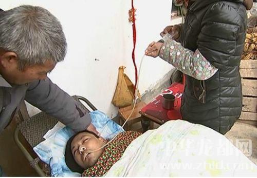 病人叫張肖,家住太康縣遜母口鎮劉橋行政村邵莊村,此人人脈很好、平時精明能干,曾在洛陽等地承包工地搞建筑。2015年3月的一天夜里10時許,他和朋友晚飯后騎車回住地途中,不慎摔倒在地。當時,暈暈乎乎感覺沒事,回家就休息了,第二天已不省人事,在鄭大一附院做了開顱手術,光淤血抽出來100多毫升,頭腫的眼都看不見。張肖的父親張德印回憶說張肖在鄭治療花費60多萬,由于無力支付高額醫療費用,轉診到太康縣醫院又花十多萬。令人惋惜的是,張肖錯過了最佳治療時間,從此成了植物人。