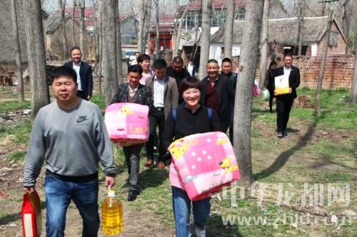上午11點,在志愿者王剛的組織下,趙亮、程桂菊、宋東風等志愿者、愛心人士驅車來到太康縣遜母口鎮劉橋行政村邵莊,給重病患者張肖送“愛心款”。