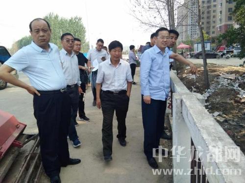 張建黨一行先后來到鄲城路、搬口張賀橋行政村征遷現場、人和路北延、恒山路西通、光明路西通、崛起路北延、慶豐路東延、引黃調蓄工程和文昌大道升級改造工程等施工現場進行現場辦公。每到一處,張建黨都認真查看和聽取揚塵治理和項目建設工作開展情況。