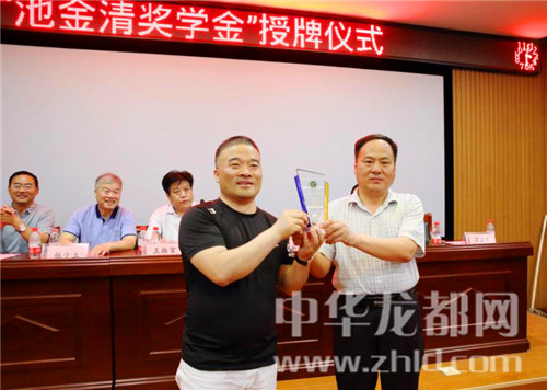 中華龍都網訊(周口報業全媒體記者李瑞才 通訊員 郭中華 寧高明)致富不忘桑梓,設獎回饋母校……5月18日下午,“池金清獎學金”授牌儀式在鹿邑二高舉行。鹿邑縣金輝名酒貨倉董事長池金清、鹿邑縣教體局局長王振言及全校師生代表300多人參加授牌儀式,以對從該校走出去、創業有成并設立獎學金回饋母校學子的池金清先生的義舉表示感謝。