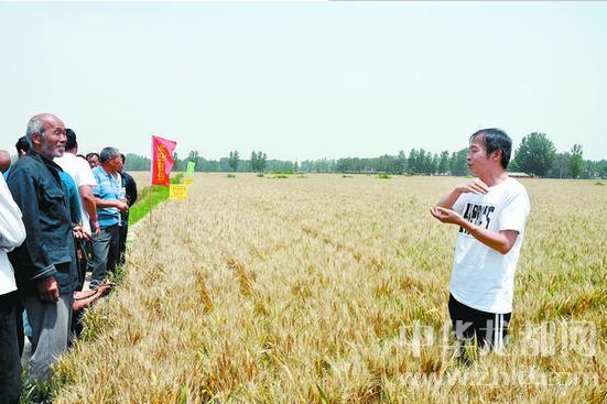 昨日下午,小麥專家在周口市天華農業合作社魏集鎮小麥生產基地察看小麥長勢。今年該合作社種植優質小麥2萬多畝,預估畝產652公斤。記者 付永奇 攝