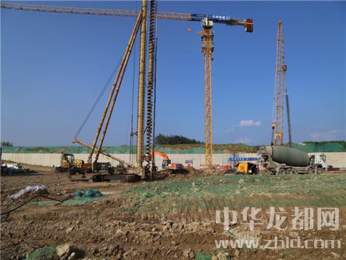 中華龍都網訊(周口報業全媒體記者 張勁松 通訊員 王紅紅 王玉鳳 文/圖)7月8日,記者在鄭阜鐵路河南段站房Ⅱ標項目部(鄭合高鐵周口東站)了解到,該項目目前已完成樣板施工,正在進行基礎施工,站房樁基工程已經完成60%,道路施工已經完成。