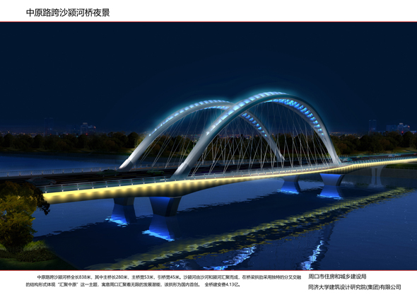 這次集中開工的14座橋梁,包含中原路跨沙潁河橋新建工程,流沙河大成路橋、洼沖溝政通路橋、洼沖溝人和路橋、流沙河騰飛路橋新建工程,以及9座老橋梁景觀改造工程,均位于城市主次干道的重要節點,總投資5.6億元。其中,新建的中原路跨沙潁河大橋是其中最大的工程,橋長837米,橋寬45米,建安費投資估算4.2億元,建成后,沙潁河南北通行更加順暢。