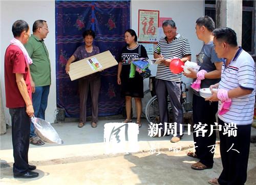 7月23日,西華縣工商局幫扶工作隊一行6人,冒著38度高溫,來到奉母鎮劉莊村,為該村16戶貧困戶送去了案板、鍋、碗、盆、筷子、水舀子和門簾等生活用品。