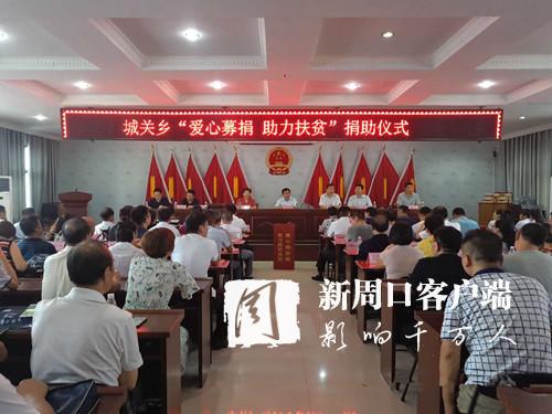 8月7日上午,商水縣城關鄉“愛心募捐 助力扶貧”捐助儀式舉行??h委常委、統戰部部長李遠富,縣政府黨組成員王迎喜,縣民政局局長朱赫、城關鄉轄區內38家愛心企業單位負責人和全鄉駐村第一書記、支部書記、脫貧責任組組長等參加了會議。