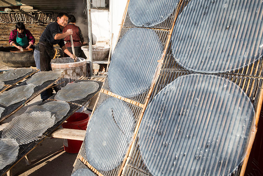 該村地處豫皖兩省交界處,是一個(gè)聞名遐邇的粉皮加工專業(yè)村。村里人手工做粉皮已有近百年歷史,從事粉皮加工的村民達(dá)500多人。 來(lái)到這里,您可以看到手工做粉皮的全過(guò)程。(王天定文/圖)