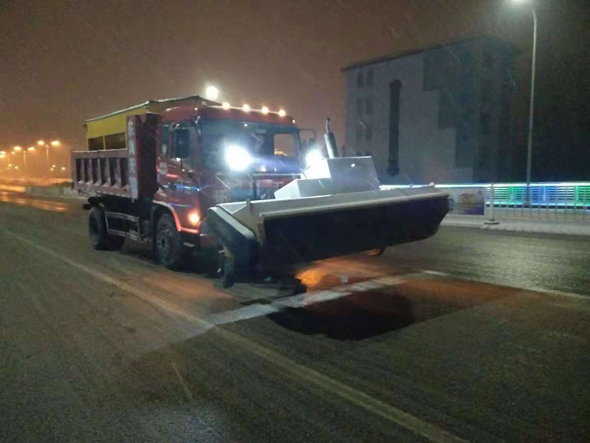 12月11日凌晨1時(shí)許,在周口市區(qū)大慶路橋上,嚴(yán)寒低溫下,一輛融雪環(huán)衛(wèi)作業(yè)車往返橋面拋撒融雪劑。據(jù)悉,為保障路面暢通和廣大市民安全出行,川匯區(qū)愛(ài)衛(wèi)辦的工作人員加班加點(diǎn),趕赴各自責(zé)任區(qū)域,連夜對(duì)中心城區(qū)主要路段進(jìn)行消除積冰積雪工作。他們先后對(duì)中州大道橋等市區(qū)幾座橋梁的上下坡道、橋面及文昌大道、七一路、交通大道、中州大道、八一大道、大慶路、建設(shè)大道等主要路段的背陰易結(jié)冰路面進(jìn)行了拋撒融雪劑作業(yè),防止路面結(jié)冰。記者 彭慧 攝