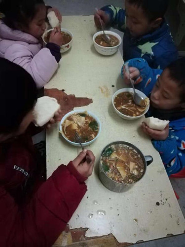 “校長做的飯好吃嗎?”“好吃!”五個孩子異口同聲的回答,孩子們的眼神中只有幸福。