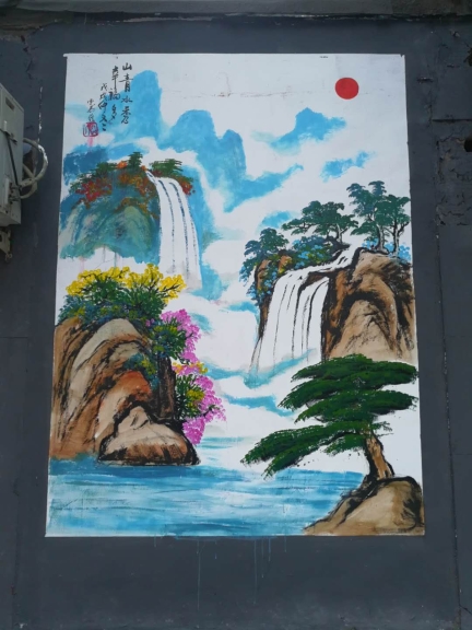 兩幅墻體彩繪,使普通而老舊的墻壁變成了一道靚麗的“文化風景”,以一種清新、典雅的形式,扮靚著城市。