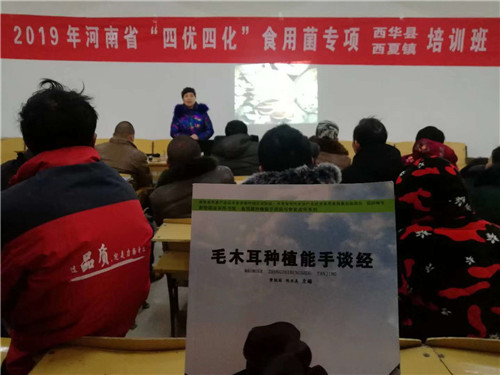會議邀請河南省食用菌產業技術體系周口試驗站黃桃閣、聞亞美、丁亞通等專家進行授課。培訓活動以大眾典型食用菌品種——毛木耳為主題,分別從種植的主要原料,發酵料種植毛木耳的關鍵因素以及毛木耳高產、優質的關鍵技術、栽培技術等三個方面,圖文并茂,內容詳實向與會群眾進行講解傳授。