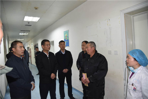 3月4日,扶溝縣委書記盧偉,縣委副書記、政法委書記張峰,縣委常委、縣委辦公室主任朱良杰等一行,前往縣人民醫院親切看望慰問在脫貧幫扶工作中受傷的駐村工作隊長朱天中。