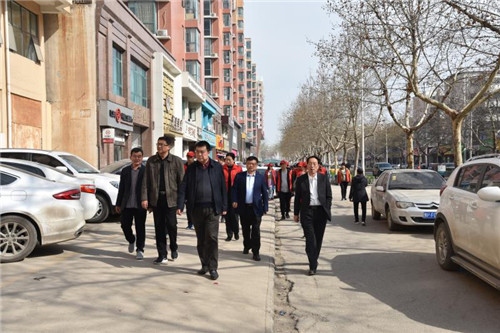 3月26日上午,川匯區政協主席張劍鋒,黨組副書記、副主席梁顯棟,副主席王建國、馬淮海到建安路檢查督導“市容工作日”活動開展情況。七一路辦事處主任王峰陪同檢查。