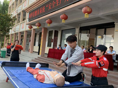 活動現(xiàn)場,消防教官為同學(xué)們講解了防火安全的重要性,火災(zāi)的預(yù)防和救助,演示了滅火器的使用方法;西華縣紅十字會救護(hù)師耿佳佳、姚華杰二人為同學(xué)們現(xiàn)場生動講解演示“珍愛生命、預(yù)防溺水”的生動安全教育課,讓同學(xué)了解溺水的危害性,做好有效預(yù)防溺水的重要性,演示發(fā)生溺水怎么辦及對溺水者如何做胸外心臟按壓,同學(xué)們認(rèn)真聆聽和學(xué)習(xí),學(xué)會了判斷呼吸心跳停止、按壓手法、按壓位置、打開氣道方法、判斷呼吸心跳是否恢復(fù)等急救技能。同學(xué)還掌握了溺水急救基本標(biāo)準(zhǔn):打開氣道、人工呼吸、胸外按壓。