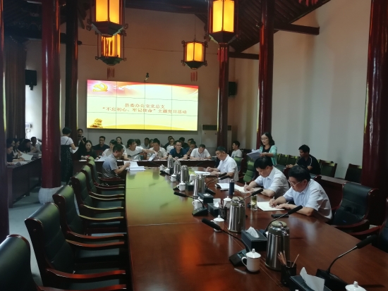 6月25日下午,鹿邑縣委辦公室黨總支開展“不忘初心、牢記使命”主題黨日活動。縣委書記梁建松,縣委常委、辦公室主任侯自峰以普通黨員身份參加活動,并帶頭繳納了黨費。縣委辦公室常務副主任、黨總支書記胥茂森主持主題黨日活動。縣委辦公室全體黨員參加活動。