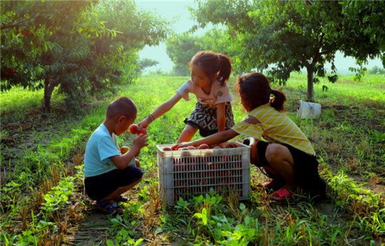 面對此情此景,西華縣攝影家協會、西華縣藝術攝影學會攝影愛好者馬孝奎、李果霖、劉娜、馬東雷約伴而行,利用雙休日,擠出休息時間,往返潁河兩岸村莊桃園十余天,與桃鄉父老一同起早貪黑,用相機鏡頭定格果農摘桃子、賣桃子的豐收和喜悅。