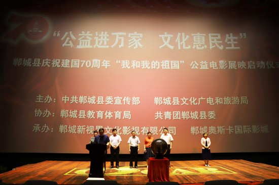 6月27日,鄲城縣“公益進萬家,文化惠民生”暨慶祝建國70周年公益電影展映活動啟動儀式,在該縣奧斯卡國際影城巨幕影廳舉行。河南省委宣傳部電影處處長梁莉、副處長王澤平,周口市委宣傳部副部長王健、電影科科長曹麗瑩,鄲城縣委常委、宣傳部長吳青鋒,縣委常委、副縣長劉輝出席啟動儀式。劉輝主持儀式。