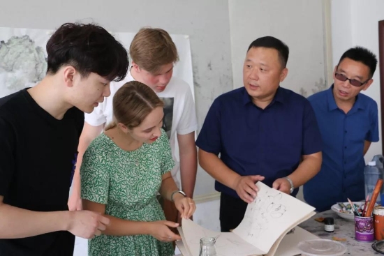 鹿邑本土畫家劉龍飛畫的花鳥栩栩如生引起俄羅斯青年畫家們的嘖嘖稱嘆。兩位青年畫家通過翻譯告訴記者,中國畫歷史悠久、博大精深,看到兩位老師的畫作形神兼備,氣韻生動,真是不虛此行,感謝贈送的佳作,他們一定珍藏。據悉,本次活動他們將以國際藝術志愿者的身份、以西方人的視角描繪老子故里的美景,他們走進明道宮、太清宮等景點實地寫生,并走美術學校為孩子們輔導繪畫并帶來世界名校的繪畫理念。