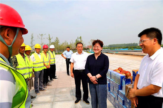 炎炎夏日,酷熱難當。張穎波一行為高鐵施工人員送來了總價值約2萬元藿香正氣口服液、太極水等藥品和西瓜,并送來了扶溝人民對施工人員戰酷暑、保進度的親切慰問。該項目負責人感動地說,“張縣長對高鐵項目時刻牽掛于心。過年時陪著工人吃餃子,三伏天送‘清涼’,大家心里很溫暖。”該負責人表示,要把溫暖傳導給一線施工人員,化作工作的動力,加班加點干,保質保量干,確保扶溝人民高鐵夢如期夢圓。