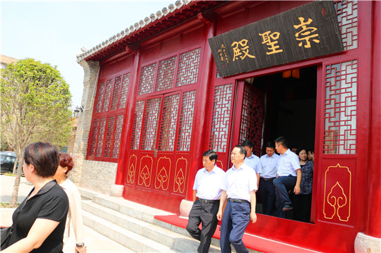 調研組一行先后到黌學堂、崇圣殿,眾妙之門牌坊、明道宮迎禧殿、玄元殿、升仙臺以及太清宮太極殿、隱山遺址、先天太后之贊碑等地,就文物古跡保護管理、文物執法情況進行實地檢查。檢查組希望鹿邑縣進一步重視和發展文化產業,積極推進歷史文化名城發展戰略,完善產業發展政策,加大投入和資源整合力度,創新產業發展觀念和模式,不斷提升文化產業發展水平。