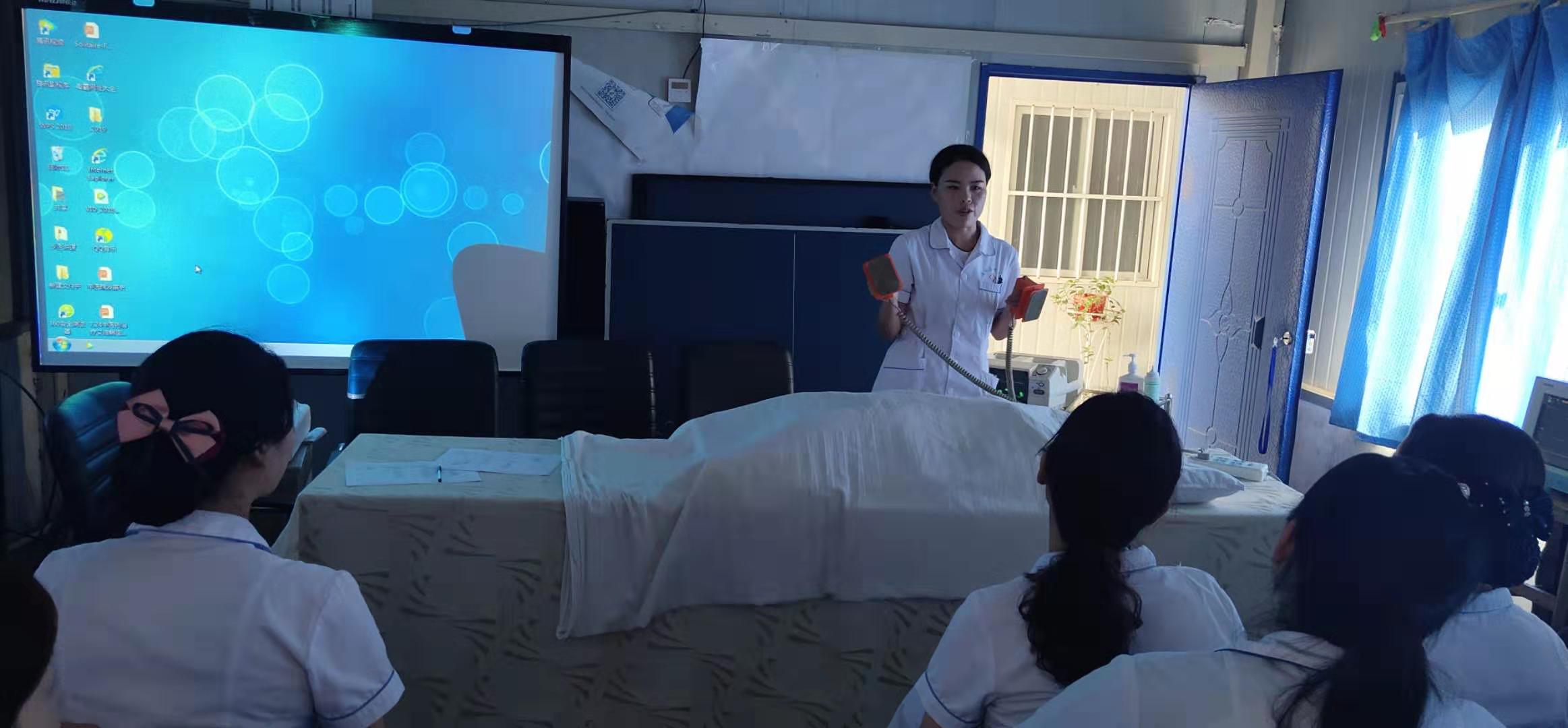 培訓由縣中醫院ICU護士崔陽陽以及ICU護士趙勤進行理論授課及實操演練。