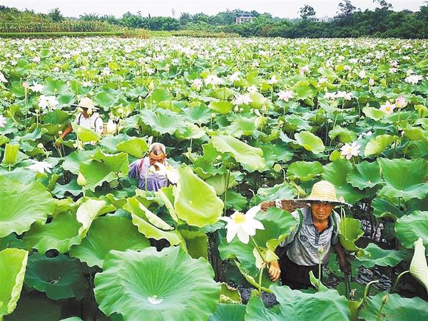 盛夏時節,沈丘縣卞路口鄉南郭莊村400畝荷塘里的蓮蓬成熟,荷塘里一片繁忙景象。近年來,該村因地制宜,種植蓮藕,讓村民增收不少。