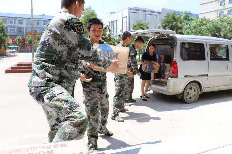 打開車門,在李丹的組織下,幾名預備役士兵一字排開,一件件礦泉水被從車上卸下來,擺放到門廳下。“這天太熱了,來兄弟,先喝點礦泉水解解渴。”李丹一邊給士兵們發(fā)放礦泉水,一邊心疼地說。