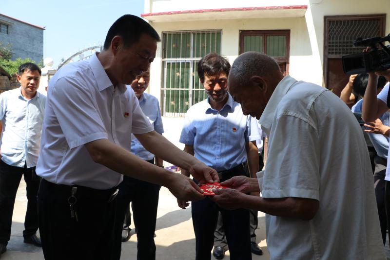 “建軍節快要到了,我代表黨委政府來看望您了,您是人民的功臣,感謝您為國家做出了很大的貢獻。”在鄧樓村鄧遠標家,閆立超關切地詢問他身體健康狀況和家庭、生活情況,感謝他為國家做出的貢獻,并為他送上慰問金和慰問品。據了解,鄧遠標是位老復原軍人,現年96歲,先后參加了抗日戰爭、解放戰爭、抗美援朝等戰爭,曾多次受獎。