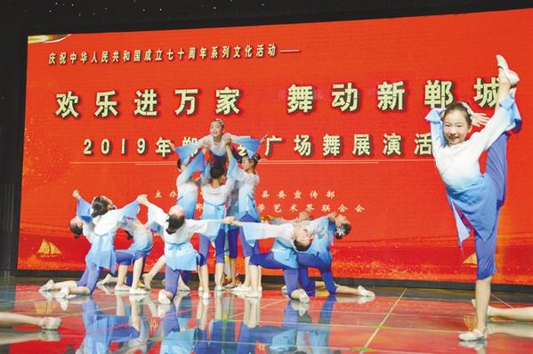 近日,以“歡樂進萬家 舞動新鄲城”為主題的2019年鄲城縣廣場舞展演活動在單程縣融媒體中心演播廳舉行。來自全縣各個鄉鎮的20支代表隊依次登場,參賽隊員身著統一服裝,隨著優美的旋律翩翩起舞。記者 徐松 通訊員 朱應召 攝