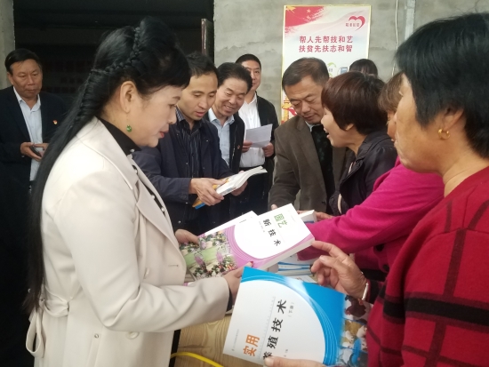 當天,淮陽縣職業中專正在借助河南省科技特派員科技專項扶貧平臺,組織豆門鄉紅山村百余名建檔立卡貧困戶學員進行為期15天的高效種植、健康養殖技術培訓。在河南省科技特派員、周口職業技術學院趙慶楓博士的引薦下,民盟周口市委的楊彥濤委員、三支部主委王春華、文化教育支部主委任東升趕到現場為大家“傳經送寶”。從種植增收致富到養殖奔小康,從關鍵技術到惠農政策,從園林園藝技術到農產品的銷售,專家們講得用心,學員們聽得認真。