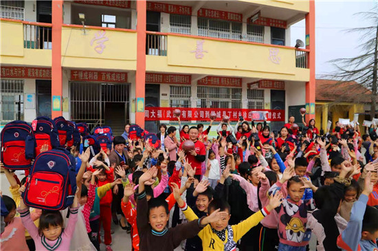 當日上午,周大福集團組織了15名員工組成義工隊,在周口區域負責人王保安的陪同下,帶著總價值3萬余元的300套愛心物資,送到學生手中。現場,他們與學生愛心互動、親切交流,為學生們背上書包、送上文具,關心學生生活和學習情況。當了解到學校資金緊張,師生還沒有統一服裝時。岳磊等人表示,將向上級申請,下一步積極為該校師生解決工作裝和校服問題。對此,徐莊小學師生熱烈鼓掌表示感謝。