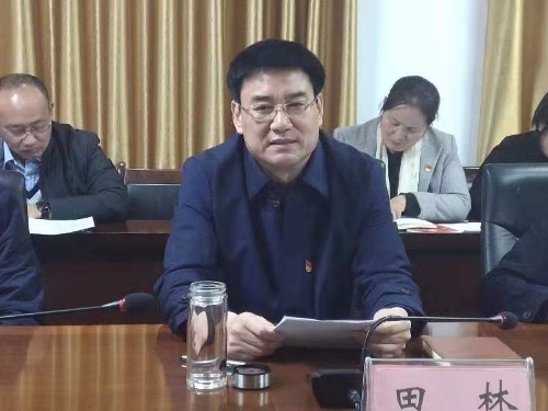 縣委副書記、縣長、縣委主題教育領導小組組長田林匯報全縣主題教育工作開展情況。