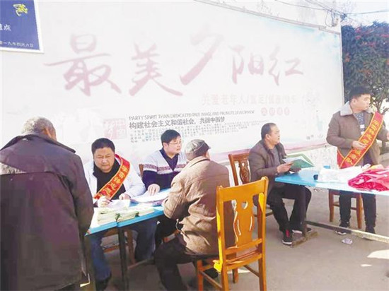近日,項城市賈嶺鎮(zhèn)衛(wèi)生院學(xué)雷鋒志愿服務(wù)隊到該鎮(zhèn)敬老院開展義診活動,為老人免費體檢。記者 楊光林 通訊員 黃國贊 攝