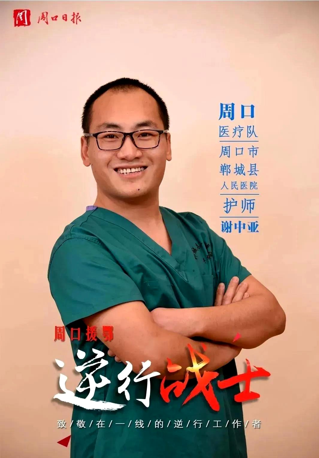 謝中亞是鄲城縣人民醫院重癥醫學科(ICU)護士。2月21日,剛剛結婚三個月的謝中亞主動請戰,前往一線參加武漢疫情防控救治工作。其實,謝中亞結婚時正趕上醫院等級評審,謝中亞的婚假只請了三天就回到科室工作。本想著忙完醫院評審工作度蜜月,結果疫情又打亂了計劃。對此,他毅然決然參戰,體現了一名醫護人員的責任和擔當。