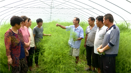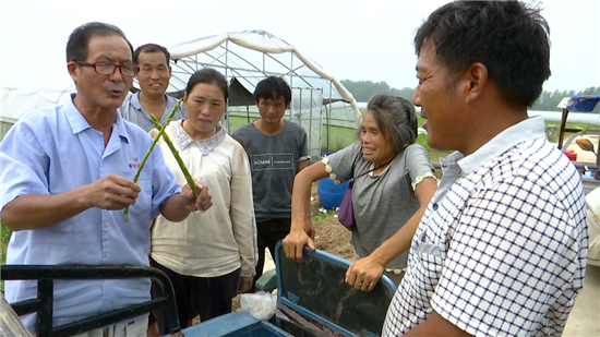 當天,一場技術講座正在如期舉行,當地有名的蘆筍種植“土專家”程殿明說:“咱這蘆筍種植,要以噴灑生物藥為主,在有機種植上,千萬不能用有機磷類的。大棚要想多掙錢,眼下管理是關鍵,長勢好了,進入冬季,一個棚采摘就能掙三到五千塊錢。”