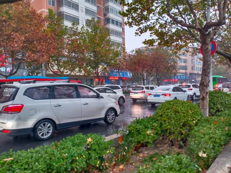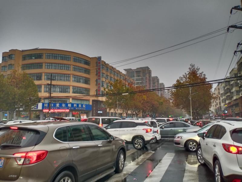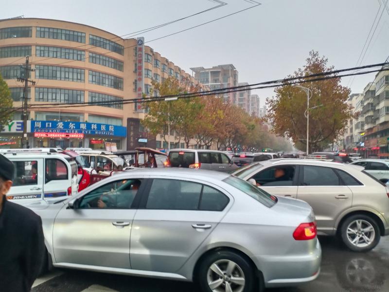 11月17日7時30分許,天空下起了小雨,在這樣的天氣里,開車出行的市民多了起來,記者在周口中心城區建安路與育新路交叉口附近看到,過往車輛把這里堵了起來,車輛前行緩慢。③7