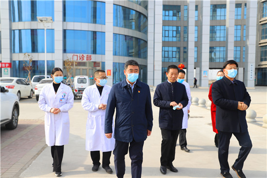 聽取匯報后,孫鵬前往發熱門診實地查看了解疫情防控工作的各項措施,就當前疫情防控重點與一線人員進行深入交流。新冠疫情暴發以來,港區醫院主動承擔公共衛生職責,協助港區黨委、管委會為港區群眾筑起了一道堅固的健康安全防線。武漢疫情暴發期間,周口港區醫院派出一支由8人組成的援鄂醫療隊前往武漢,在武漢商職醫院收治新冠肺炎患者117人。孫鵬對港區醫院在新冠疫情防控工作中展現出的擔當、作為進行表揚,對8位援鄂醫療隊員冒著生命危險,無私奉獻、勇于擔當的敬業精神表示贊賞。