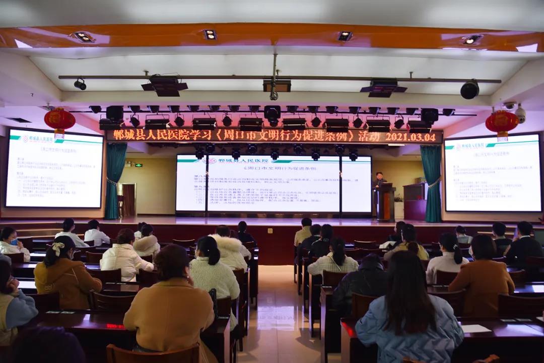 近日,鄲城縣人民醫院按照縣文明辦的要求,在全院范圍內深入開展學習《周口市文明行為促進條例》活動。宣教科長孫小明結合醫院工作實際,對照《周口市文明行為促進條例》五章42條逐章逐條進行詳細解讀,重點強調了文明交通、文明旅游、文明餐桌、文明上網及窗口服務的部分條款。