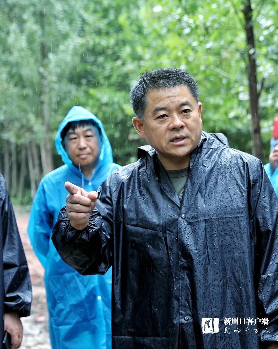 7月28日上午,扶溝縣委書記孫紅偉冒雨到賈魯河大堤險工險段實地督導保堤護堤工作。