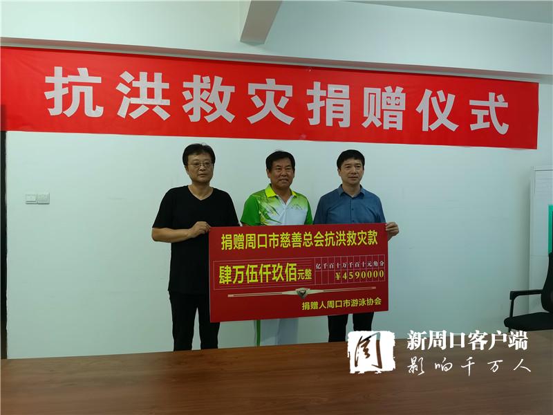 7月31日上午,市游泳協會通過市慈善總會定向捐贈川匯區防汛搶險款4.59萬元。