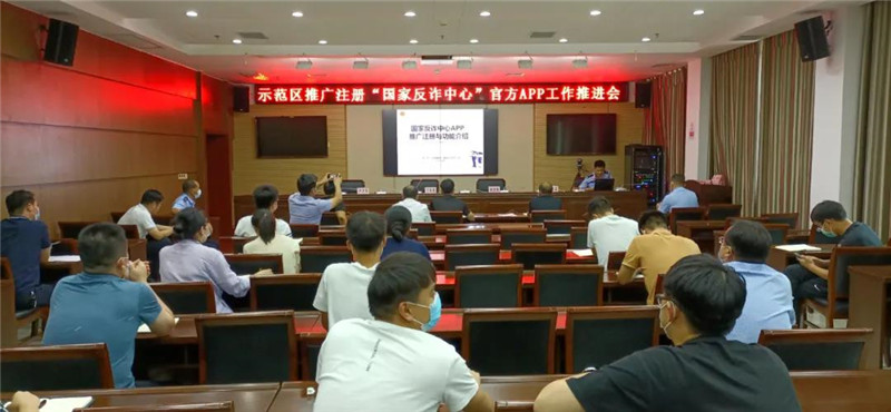8月11日,示范區召開推廣注冊“國家反詐中心”官方APP工作推進會,安排全區反電詐工作,現場演示并部署推廣注冊“國家反詐中心”官方APP工作任務。區二級調研員丁有亮,示范區公安分局局長何學民出席會議。